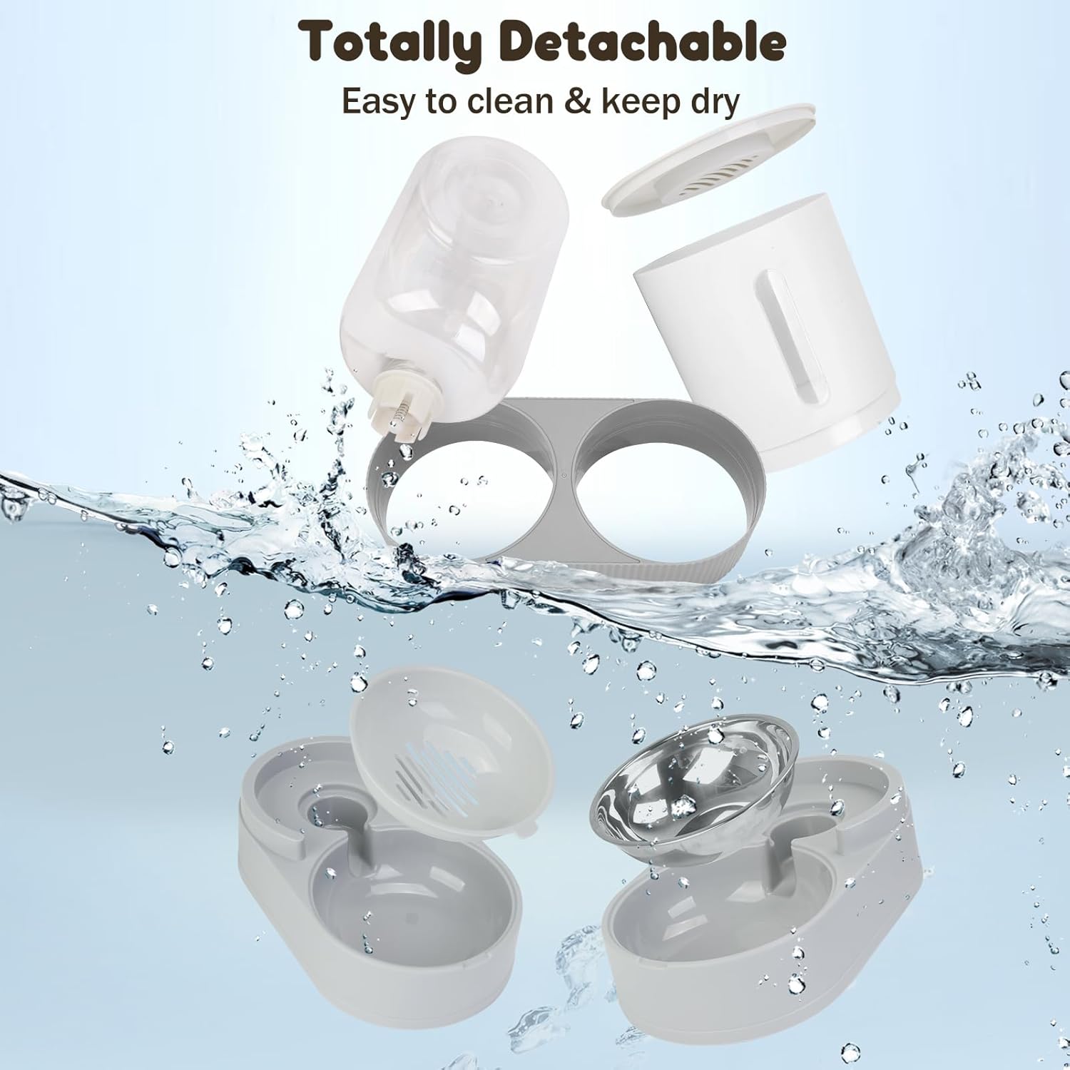 Automatic Dog Feeder and Water Dispenser, 2-in-1 Gravity Pet Water and Food Dispenser, 2.6L Pet Waterer, 2.4L Pet Feeder for Small Medium Cats Dogs